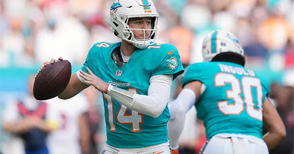 MIAMI GARDENS.- El quarterback novato Quinn Ewers lanzó para 172 yardas y dos touchdowns, incluyendo un pase de 63 yardas para su primera anotación en su carrera, y los Dolphins de Miami vencieron el domingo 20-17 a unos Buccaneers de Tampa Bay en declive.