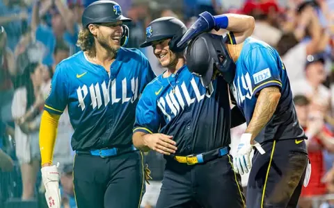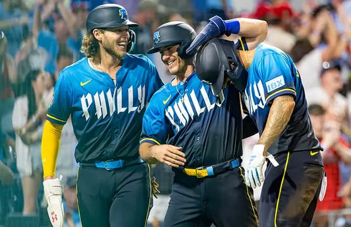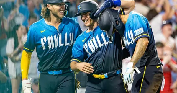 Un sencillo impulsor de Alec Bohm puso a Filadelfia al frente 4-2 y terminó con la noche de Garrett. Justin Garza permitió luego un sencillo impulsor a Castellanos antes del batazo de Stott contra la pared entre el bosque izquierdo y el central.