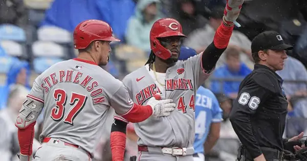 KANSAS CITY, Missouri.- Nick Martinez trabajó siete sólidas entradas y Tyler Stephenson bateó un cuadrangular para llevar a los Rojos de Cincinnati a una victoria de 7-4 sobre los Reales de Kansas City el lunes.