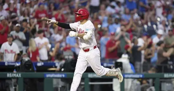 Si Merrill hizo la jugada del partido, Bryson Stott estuvo justo detrás de él para los Filis. Después de recibir una base por bolas y robarse la segunda base, Stott se apresuró a llegar al plato en un rodado de Brandon Marsh a primera y anotó con una barrida de cabeza para una ventaja de 2-0. Marsh anotó con un sencillo dentro del cuadro de Trea Turner para poner el marcador 3-0.