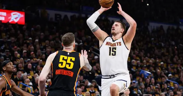 OKLAHOMA CITY.- Nikola Jokic anotó 42 puntos y capturó 22 rebotes, y Aaron Gordon encestó un triple en los últimos segundos para darle una sorpresiva victoria 121-119 a los Nuggets de Denver ante el Thunder de Oklahoma City, el mejor sembrado de la liga, en el juego 1 de la serie de semifinales del Oeste.