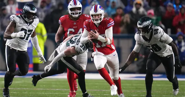 La defensiva de Philadelphia fue determinante durante los primeros tres cuartos, al neutralizar por completo el ataque de Buffalo y capturar en cinco ocasiones a Josh Allen, ante la frustración de los aficionados en el Highmark Stadium.