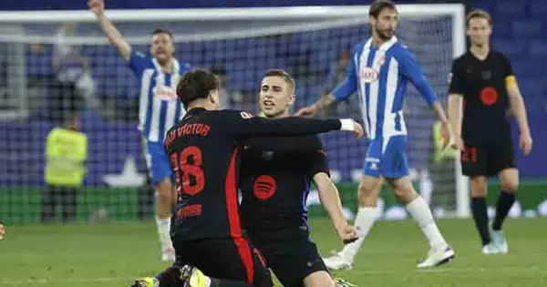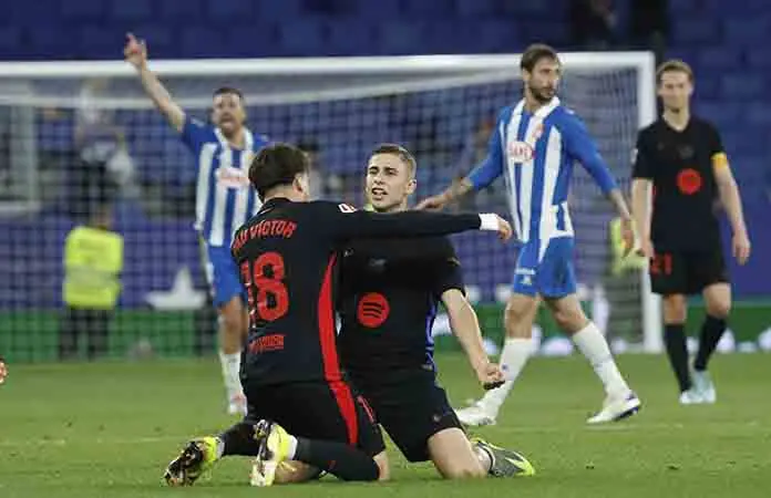Fermín López anotó en el tiempo de descuento después de que el Espanyol quedó con diez hombres a los 80 minutos por la expulsión del zaguero uruguayo Leandro Cabrera con roja directa por golpear a Lamine Yamal en el estómago mientras disputaban un balón.