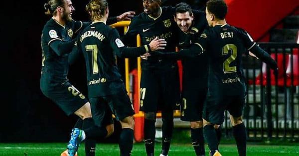 Los azulgranas sentenciaron el choque en el primer tiempo con un tempranero gol del francés Antoine Griezmann y un doblete del argentino Leo Messi, mientras que rubricaron el 0-4 con otro tanto de Griezmann ante un Granada que jugó el cuarto de hora final con diez al ser expulsado con roja directa Jesús Vallejo en el minuto 78.