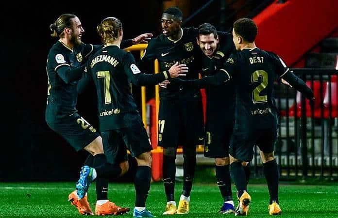 4 - Barcelona: Ter Stegen; Dest (Junior, m.81), Umtiti, Mingueza, Jordi Alba; De Jong (Pjanic, m.65), Sergio Busquet, Pedri (Trincao, m.73); Dembele (Riqui Puig, m.73), Messi (Braithwaite, m.65) y Griezmann.