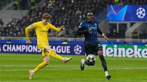 Asedio total del Inter en la primera mitad. Solo un tímido remate del Bodo a la contra. Pero la sensación de que el Bodo podía aguantar el resultado. Los nervios se apoderaron de San Siro. Solo 5 minutos para, al menos, marcar dos goles. Y cuando menos lo esperó, cayó un jarro de agua fría. Porque uno de sus jugadores más fiables en la temporada, Akanji, se hizo un lío con el balón y, en un intento de ceder a Sommer, dejó solo a dos jugadores del Bodo.
