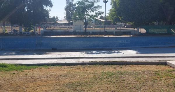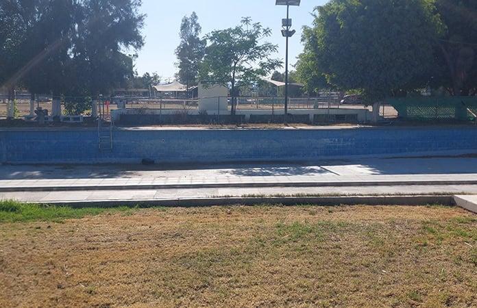 La alberca del complejo, que en otros tiempos albergaba clases y entrenamientos, permanece vacía, sucia y visiblemente descuidada.