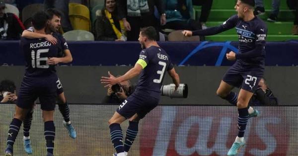Los de Guardiola siguieron controlando el partido como querían. El Sporting, con un Pedro Porro muy participativo, no logró tirar entre los tres palos hasta el minuto 36, con un remate de Pedro Gonçalves "Pote".
