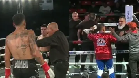 Fierro soltó golpes al "estilo callejero", desobedeció al réferi y al final soltó una patada a la altura de la cadera al jalisciense 'Bombi' Cordero, quien aprovechó la situación y se fue al suelo; su esquina de inmediato entró al ring para calmar la situación.