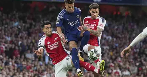 Los suplentes Bradley Barcola y Gonsalo Ramos tuvieron oportunidades de duplicar la ventaja al final cuando quedaron de cara al gol. Pero Barcola disparó apenas desviado y Ramos sacudió el travesaño, manteniendo al Arsenal con una oportunidad de cara al partido de vuelta en París la próxima semana.