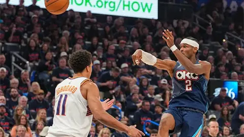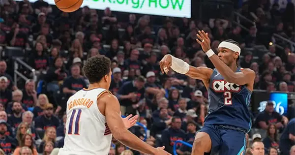 OKLAHOMA CITY.- Shai Gilgeous-Alexander anotó 37 puntos y repartió nueve asistencias, y el Thunder de Oklahoma City derrotó 120-107 a los Suns de Phoenix el miércoles por la noche para tomar ventaja de 2-0 en su serie de primera ronda de los playoffs de la Conferencia Oeste.