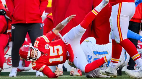 Justin Herbert, jugando con una mano izquierda rota, había ayudado a los Chargers a tomar la delantera con una remontada en la segunda mitad, pero Kansas City recuperó el balón con una oportunidad más. Mahomes estaba corriendo hacia la línea lateral y lanzando el balón fuera cuando fue derribado por el liniero defensivo Da´Shawn Hand, dejando al dos veces MVP sujetándose la rodilla izquierda.