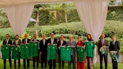 A través de una publicación en redes sociales, Arriola compartió la invitación del Excmo. Embajador de Su Majestad el Rey de Marruecos en México, Sr. Abdelfattah Lebbar, junto a una foto donde todos los presentes lucen la camiseta que usará la Selección Mexicana en el Mundial.