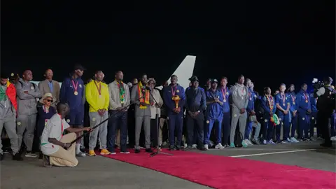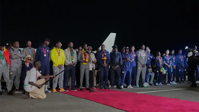 Los jugadores llegaron al aeropuerto internacional fuera de Dakar por la madrugada y fueron recibidos por el presidente senegalés Bassirou Diomaye Faye, quien elogió su desempeño.