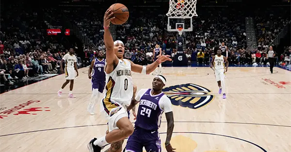 DeMar DeRozan hizo una bandeja en penetración con 4:08 restantes en el primer cuarto que dio a los Kings una ventaja de 20-15, pero Bryce McGowen y Murphy encestaron triples consecutivos para dar a Nueva Orleans la ventaja definitiva y desencadenar una racha de 25-6.