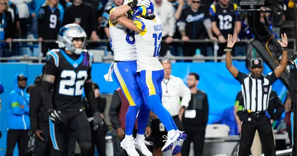 Los Ángeles llegó a estar arriba 14-0 antes de Charlotte los superara 31-13 en los siguientes dos periodos necesitando una épica remontada orquestada por Matthew Stafford en el último cuarto para sobrevivir.