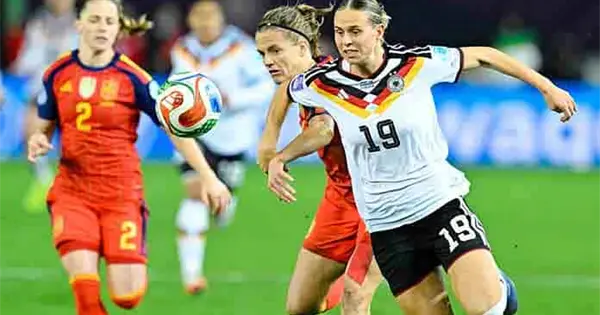 Normalmente maestras de la posesión, las españolas perdieron continuamente el balón bajo la presión de Alemania. La tres veces ganadora del Balón de Oro, Aitana Bonmatí, estuvo ausente mientras España se replegaba en su área.