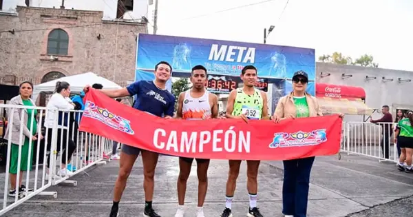 Resultados destacados en la distancia de 10 km: Categoría Libre Femenil (hasta 39 años): 1. Sara Ruiz con tiempo de 00:51:18; 2. Guadalupe Portales con 00:52:42; 3. Socorro Ruiz con 00:59:07. Categoría Libre Varonil (hasta 39 años): 1. Bruno David García (Halcones) con 00:39:35; 2. Jesús Ramírez González (Team González) con 00:41:1; 3. Edgar Fernando González Pérez (Team González) con 00:42:27.