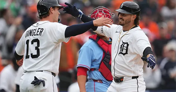 DETROIT.- Kerry Carpenter, Zach McKinstry y Matt Vierling conectaron jonrones de dos carreras e impulsaron tres anotaciones cada uno, y los Tigres de Detroit se abrieron paso hacia una victoria el sábado 11-6 sobre los Cardenales de San Luis, en un juego acortado por la lluvia.
