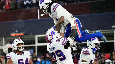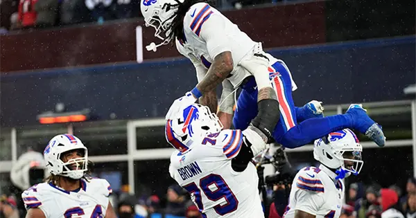 Massachusetts.- Josh Allen lanzó tres pases de anotación y James Cook corrió para dos touchdowns y atrapó otro mientras los Bills de Buffalo remontaron un déficit de 21-0 para vencer a 35-31 a Nueva Inglaterra el domingo, evitando que los Patriots aseguraran el título de la División Este de la Conferencia Americana.