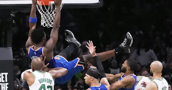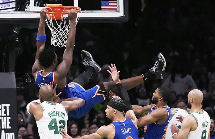 BOSTON.- Jalen Brunson y OG Anunoby anotaron cada uno 29 puntos antes de que Mikal Bridges robara el balón a Jaylen Brown con un segundo restante en el tiempo extra y los Knicks de Nueva York superaron 108-105 el lunes a los Celtics de Boston en el primer encuentro de la serie de semifinales de la Conferencia Este.