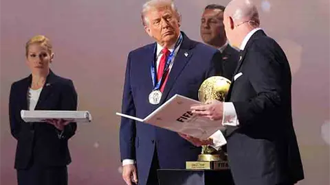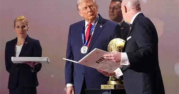 Al otorgar el premio, Infantino le dijo a Trump que era una “hermosa medalla para ti que puedes llevar a donde quieras”. Trump se colocó rápidamente la medalla alrededor del cuello. El certificado que Infantino entregó a Trump reconoce al presidente de Estados Unidos por sus acciones para “promover la paz y la unidad en todo el mundo”.