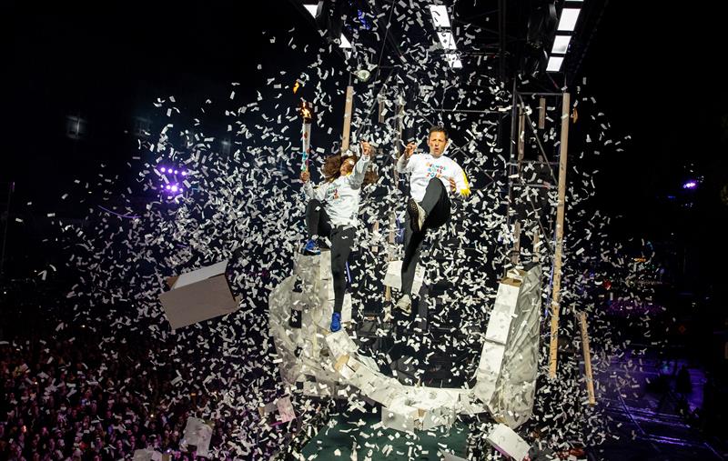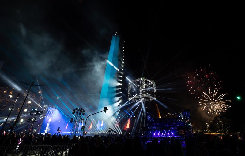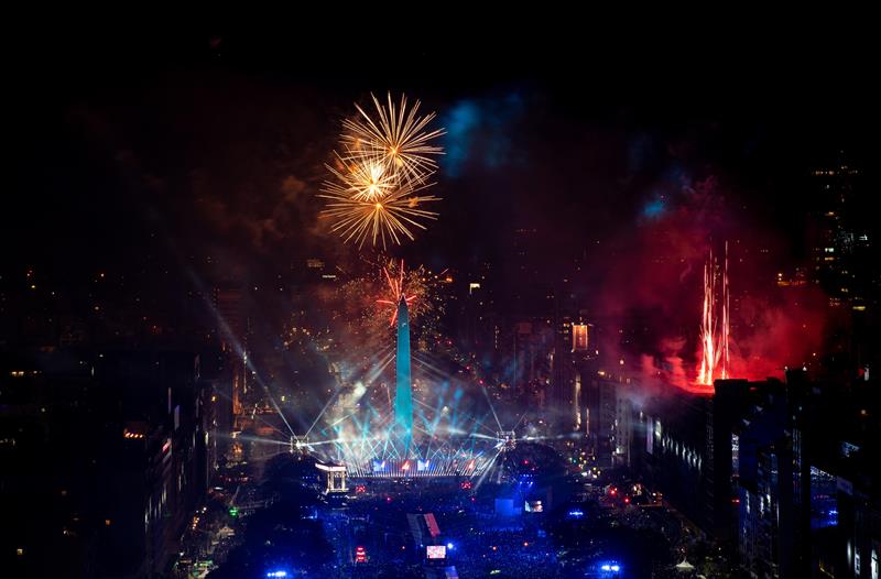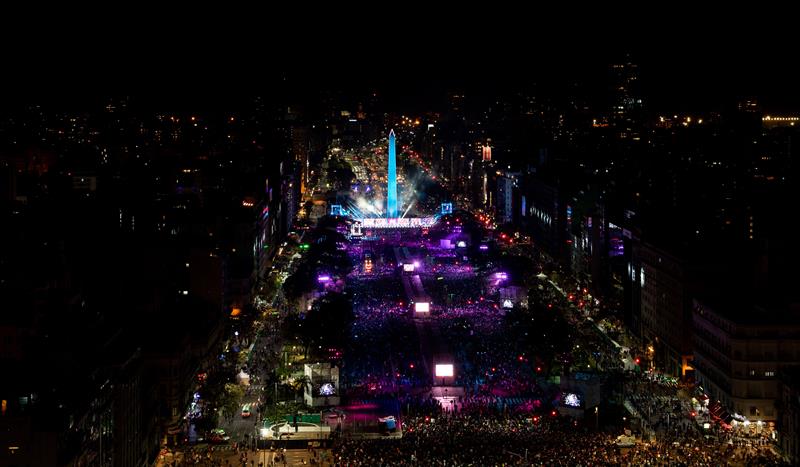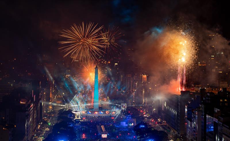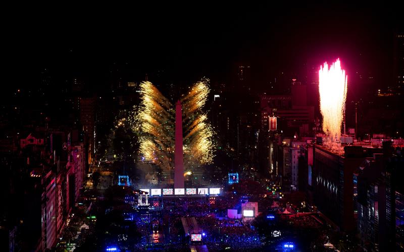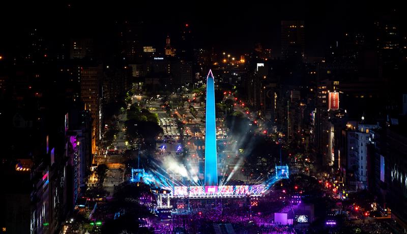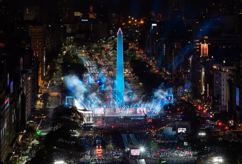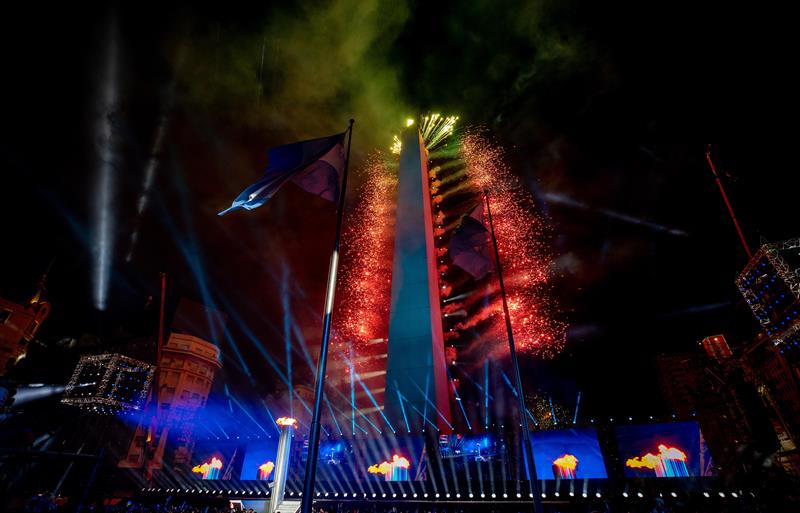 Los medallistas olímpicos de Río 2016, la judoca Paula Pareto y el velerista Santiago Lange, fueron los encargados de prender el pebetero ubicado a los pies del Obelisco y que representa la dimensión humana del fuego.