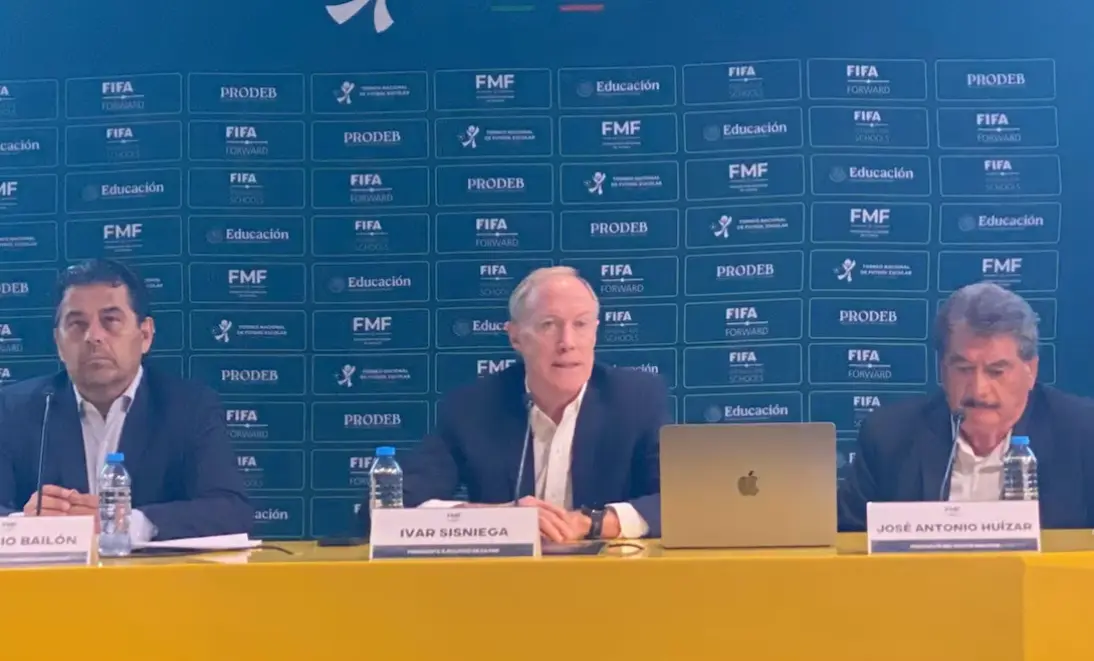 En compañía de Mauricio Bailón, director general de Desarrollo Deportivo y José Antonio Huizar, presidente del Sector Amateur, Ivar Sisniega, presidente ejecutivo de la Femexfut, presentó las iniciativas del proyecto que busca llevar el futbol a más de 13 millones de estudiantes de primaria en todo el país.