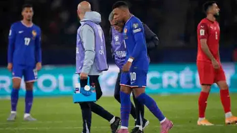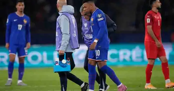 Mbappé fue duda durante toda la semana por una lesión en su tobillo derecho, sufrida en un partido de La Liga española con el Madrid, y pareció lastimarse el mismo tobillo al final, lo que lo obligó a salir a los 83.