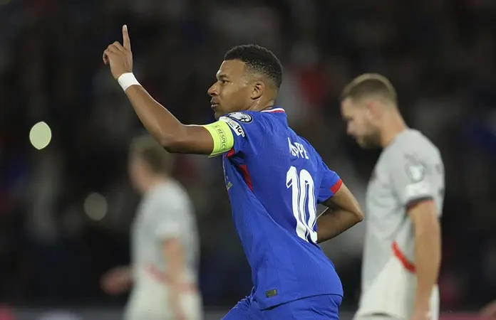 Mbappé lideró el contragolpe y asistió a Bradley Barcola, quien anotó el segundo de Francia a los 62 minutos, pero la tarea de Francia se complicó cuando Aurélien Tchouaméni fue expulsado poco después. Oleksandr Zinchenko concedió un penal por una mano, lo que complicó las posibilidades de clasificación de Ucrania al empatar 1-1 con Azerbaiyán, seleccionado que había despedido a Fernando Santos, el otrora entrenador de Portugal, tras su derrota 5-0 ante Islandia la semana pasada.