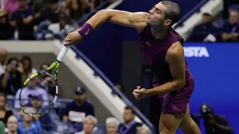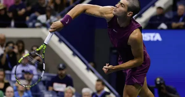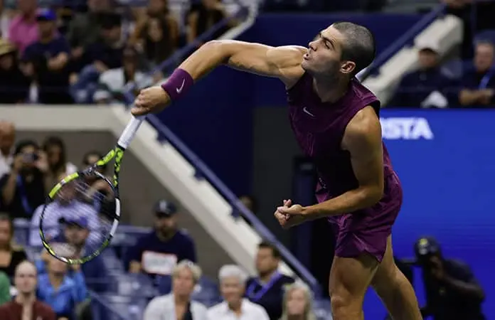 Alcaraz llegó a aquel partido con una racha invicta de 15 compromisos en majors, gracias en gran parte a los títulos en el Abierto de Francia y de Wimbledon, pero salió perdiendo en sets corridos contra Botic van de Zandschulp.