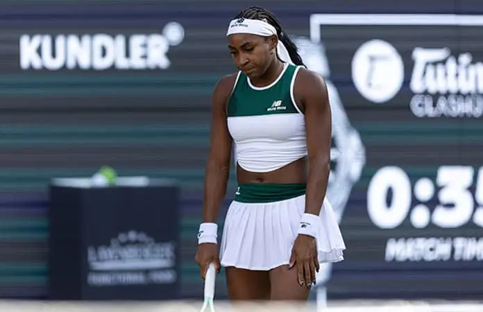 La segunda clasificada Gauff, quien ganó en Roland Garros hace menos de dos semanas para obtener su segundo título de Grand Slam, acumuló 25 errores no forzados y siete dobles faltas en su derrota ante Wang.