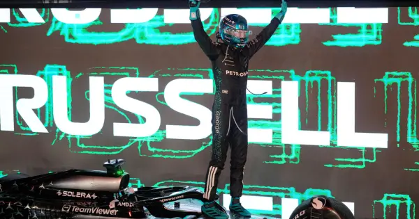 Fue un hito personal para Russell, quien se estrelló en la última vuelta mientras luchaba por los lugares del podio en Singapur en 2023.