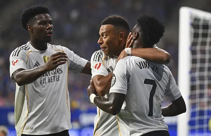 Pero fue otro delantero estrella quien rompió el empate ocho minutos antes del descanso, con Mbappé controlando hermosamente un pase de Arda Güler antes de girar y disparar un tiro bajo al rincón lejano.