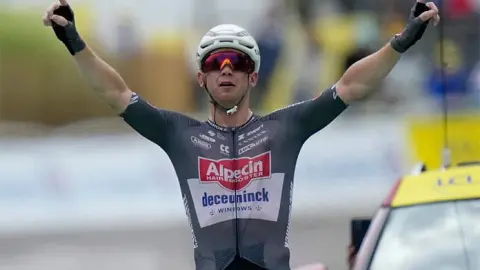 Groves (Gympie, 26 años) fue el más fuerte y valiente de los fugitivos del día. Arrancó a 20 de meta, donde llegó llorando, en solitario, señalando el maillot de su equipo. Cruzó a 4h06:08, a una media de 44,9 km/hora. Casi un minuto después los neerlandeses Van den Broeck (Picnic PostNL) y Pascal Eenkhoorn (Soudal).