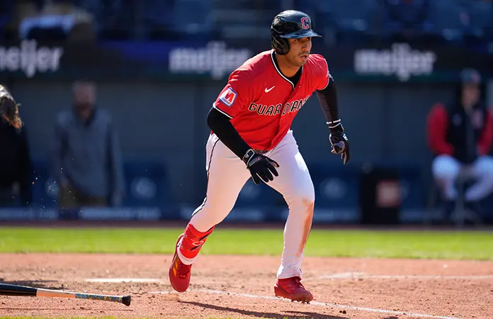 En su debut en Grandes Ligas, el segunda base dominicano Juan Brito para Cleveland. Steven Kwan conectó un sencillo impulsor en la quinta entrada.