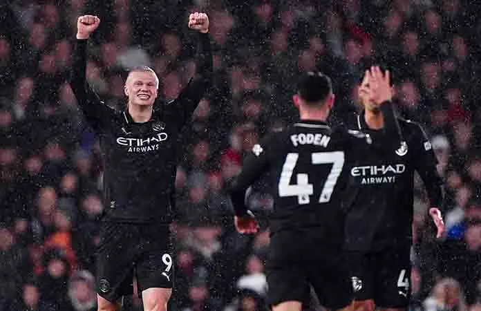 Haaland abrió el marcador en la trepidante victoria 5-4 del City ante Fulham, en la que el equipo de Pep Guardiola sobrevivió a una dramática remontada en la visita a Craven Cottage.