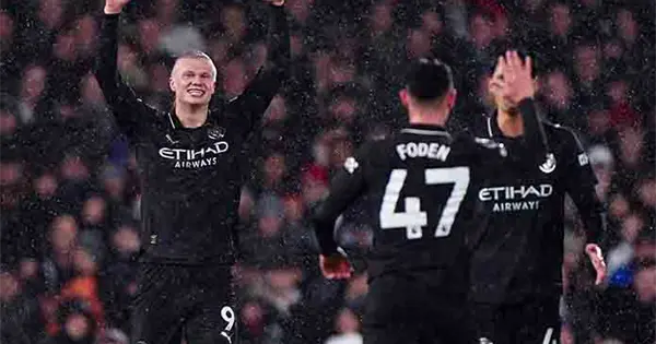 Erling Haaland llegó el martes a los 100 goles en la Liga Premier y el Manchester City se acercó a dos puntos del líder Arsenal.