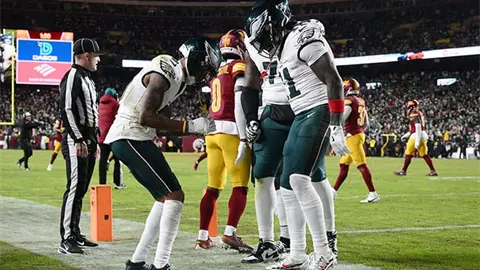 Hurts también hizo mucho daño por tierra, ganando 40 yardas en siete acarreos para los Eagles (10-5), quienes han seguido una racha de tres derrotas consecutivas con dos victorias seguidas. Son el primer equipo en liderar la NFC Este en temporadas consecutivas desde que Filadelfia lo hizo cada año de 2001 a 2004; la brecha desde entonces fue la sequía más larga sin un campeón repetido para cualquier división en la historia de la NFL.