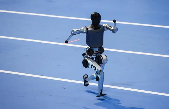 La ceremonia de apertura, celebrada ante un aforo cercano a las dos terceras partes del total de 12,000, incluyó una coreografía inicial liderada por 15 robots Booster T1 y K1, y un primer desfile en el que 25 robots con inteligencia artificial marcharon de forma autónoma en formación, sin control remoto.