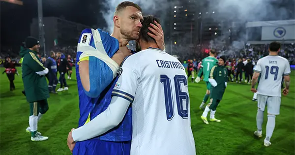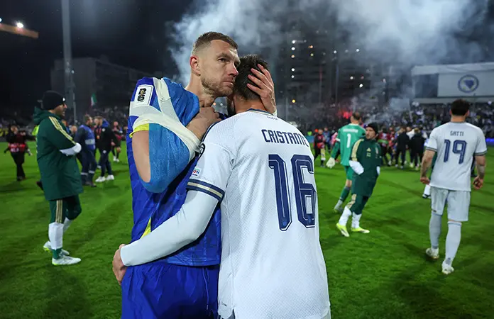 Los seis goles de Džeko en la eliminatoria, incluido el tanto del empate a los 86 minutos ante Gales en la semifinal del jueves pasado, llevaron a Bosnia a la final del repechaje. Y su fuerte disputa en un centro al segundo palo ayudó a dejar servido el balón para que Haris Tabakovic anulara la ventaja de la Italia con 10 hombres al 79 el martes.