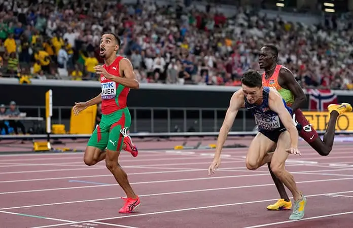 Con un ritmo pausado, Nader remontó del quinto al primer lugar en los últimos 100 metros y venció al británico Jake Wightman, el campeón del Mundial 2022 por 0.02 segundos. El tiempo del ganador fue de 3 minutos y 34.10 segundos.