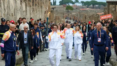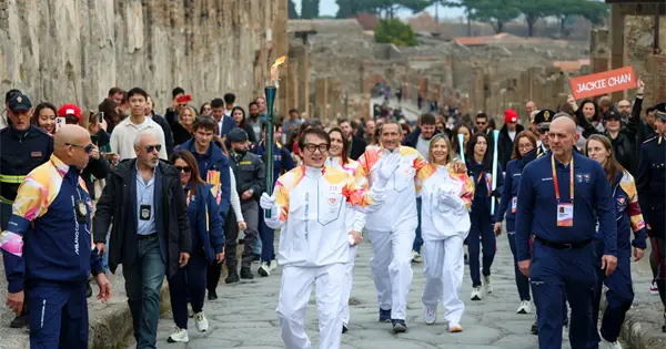 Jackie Chan lleva la antorcha olímpica por las ruinas de Pompeya