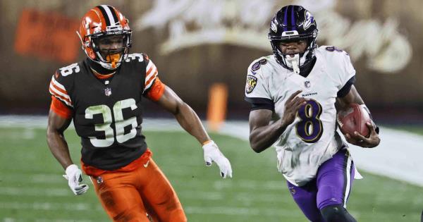 Al regresar a la cancha tras haber salido por calambres, Jackson lanzó un pase de 44 yardas para touchdown a Marquise Brown y posteriormente dejó listo el escenario para un gol de campo de 55 yardas de Justin Tucker a dos segundos del final, ayudando a los Ravens a apuntarse una apurada victoria el lunes de 47-42 sobre los Browns de Cleveland.