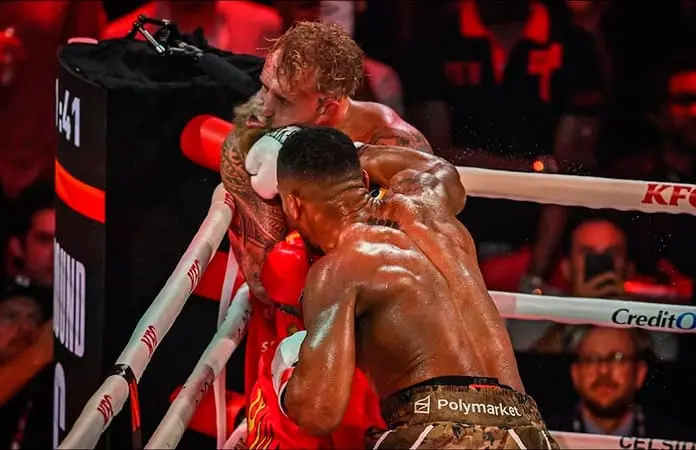 México.- Este viernes Anthony Joshua noqueó a Jake Paul en una pelea en la que el joven creador de contenido escaló hasta la categoría de peso pesado para enfrentarse a uno de los mejores del mundo. Con un derechazo directo al rostro, el británico mandó a la lona al estadounidense y lo dejó con una doble fractura de mandíbula.