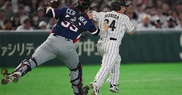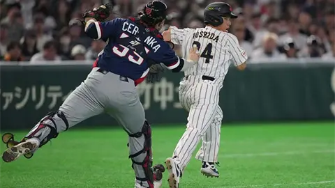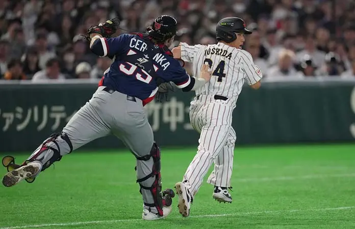 Teruaki Sato anotó gracias a un doble de Kenya Wakatsuki y el error de tiro del jardinero derecho checo William Escala. Ukyo Shuto añadió un jonrón de tres carreras y Munetaka Murakami cerró la entrada con un grand slam.