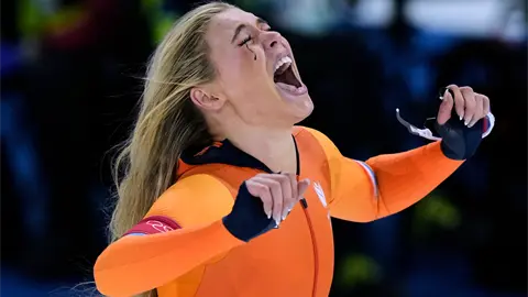 Frente a una multitud ruidosa de fanáticos vestidos de naranja de su nación apasionada por el patinaje de velocidad, Leerdam —medallista de plata en 2022— nunca se desvió de sus pasos firmes hasta cruzar la línea de meta. Luego levantó un brazo y lanzó un grito.