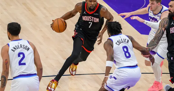 Kevin Durant anota 25 puntos en su regreso y lidera a los Rockets en triunfo sobre el Jazz de Utah. Alperen Sengun también se destaca con 27 puntos.
