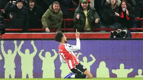 La lucha del West Ham por el descenso sufrió un golpe cuando el mexicano Raúl Jiménez anotó al minuto 85 para sellar la victoria 1-0 del Fulham, mientras que el Burnley, penúltimo en la tabla, empató 0-0 con el Everton. Kevin Schade de Brentford celebra haber anotado el tercer gol de su equipo ante Bournemouth.