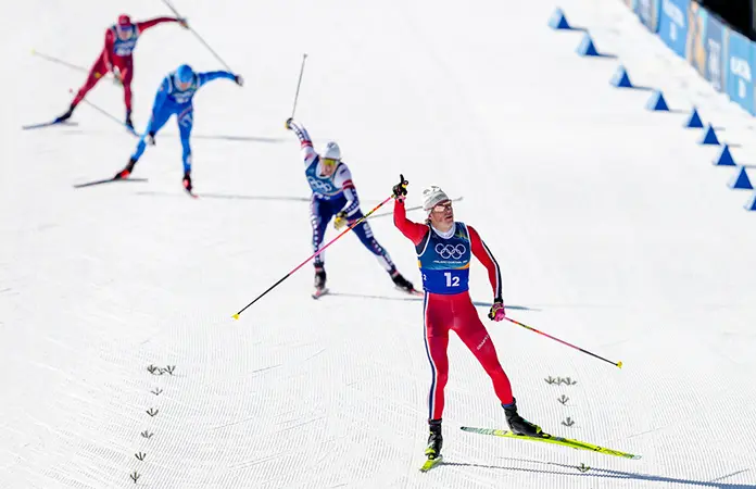 Su última carrera será la salida masiva de 50 kilómetros el fin de semana. "Hay tantos equipos fuertes y tantos esquiadores rápidos, que siempre se reduce a duelos muy ajustados. Eso lo hace aún más gratificante", manifestó Klaebo. Los corredores de Estados Unidos lucharon con fuerza por dar la sorpresa, y Schumacher solo cedió en la última subida, donde Klaebo selló la victoria.